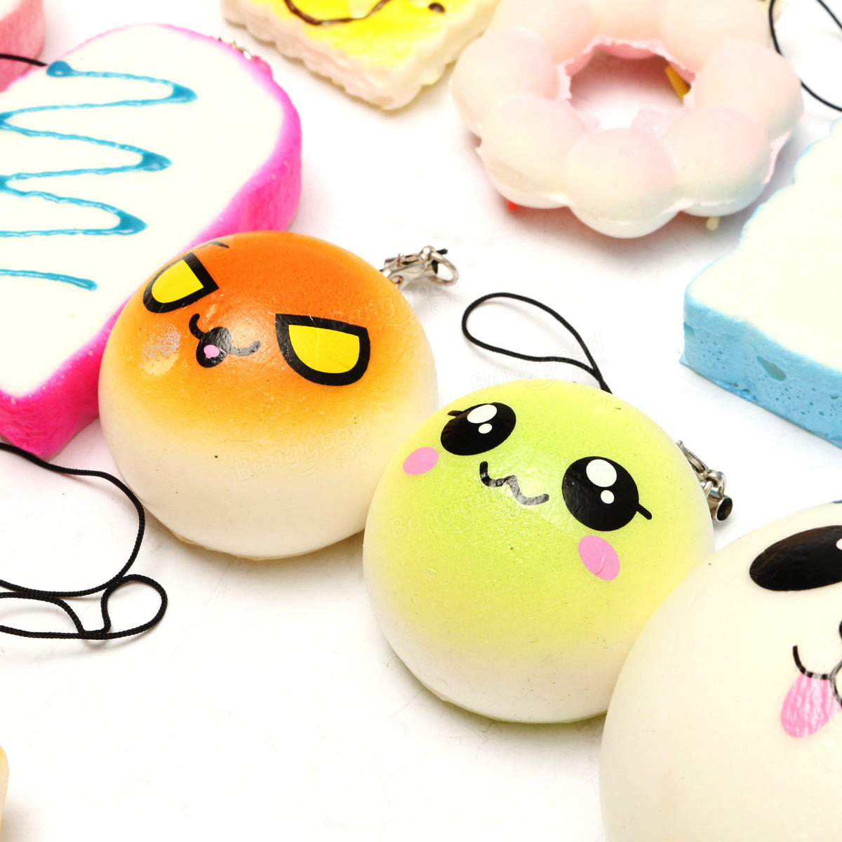 10Pcs Random Squishy Lot Soft Panda/Bread/Cake/Buns Phone Straps